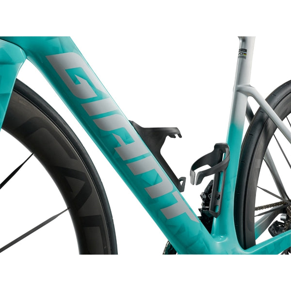Custom-engineered down tube and seat tube specific bottle cages help reduce overall aerodynamic drag.