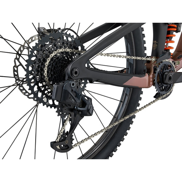 A new Maestro rear suspension system with longer travel (160mm) was developed and tested under the extreme conditions of Enduro World Series races. The trunnion mount shock has a longer stroke (62.5mm compared to 60mm on the previous generation). And the Advanced Forged Composite upper rocker arm adds stiffness and lowers overall weight.