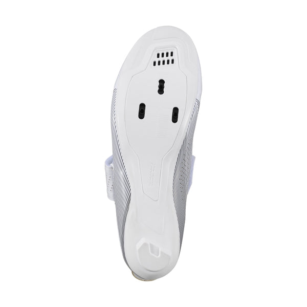 Underneath, Shimano's stiff, lightweight fiberglass-reinforced nylon sole delivers exceptional power transfer to the pedals, ensuring every watt counts. SPD-SL cleat compatibility provides a stable platform for efficient pedalling, while the shoe's glove-like fit keeps comfort consistent over long distances.