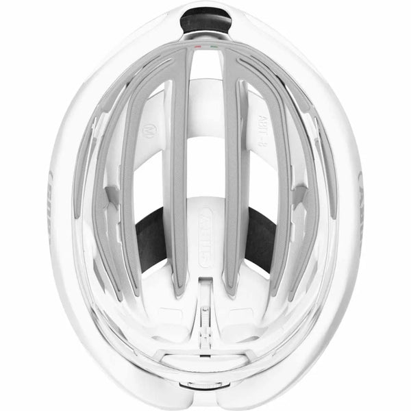 Cooling performance is achieved through enlarged vents, redesigned eyebrow intakes, and Abus' Forced Air Cooling system, efficiently guiding air through internal channels to keep your head cool on the steepest climbs and fastest sprints. Even with sunglasses in place, the ventilation remains uninterrupted, ensuring comfort during high-intensity efforts and long days in the saddle.