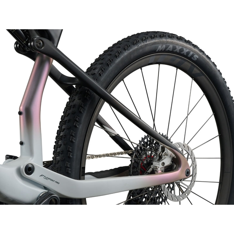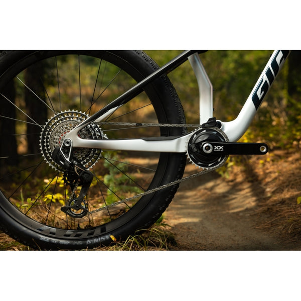 DEVELOPED TO HELP GIANT PRO ALAN HATHERLY WIN THE 2025 ELITE MEN'S XCO WORLD CHAMPIONSHIP, THIS SUPERLIGHT XC COMPOSITE FLYER IS ENGINEERED WITH A SEMI-INTEGRATED 120MM FLEXPOINT PRO REAR SUSPENSION SYSTEM AND A FLIP CHIP TO ADJUST GEOMETRY FOR ANY RACECOURSE OR XC TERRAIN.